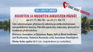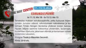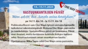 Tervetuloa seurakuntamme web-sivuille. Täältä löydä tietoa One Way Espoon seurakunnasta ja sen toiminnasta.